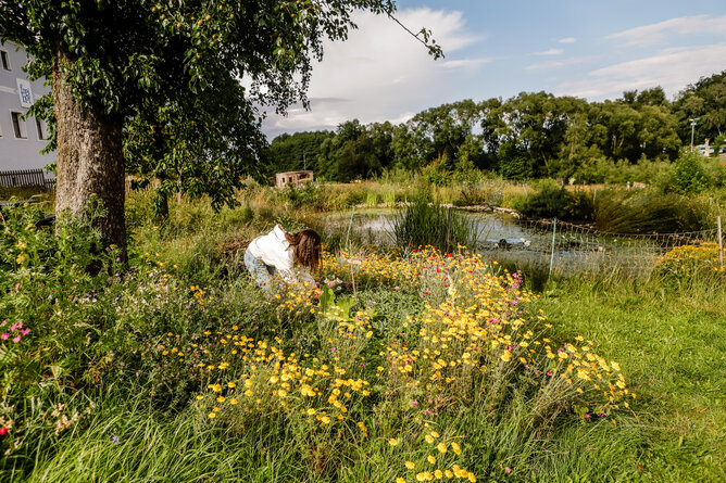 Auf dem Sinnesweg im Permakultur-Garten, zwischen tanzenden Schmetterlingen und surrenden Wildbienen, fällt es leicht, sich von Hektik und Stress zu distanzieren, einen tiefen Atemzug zu nehmen und in das Aroma der Natur mit all unseren Sinnen einzutauchen.